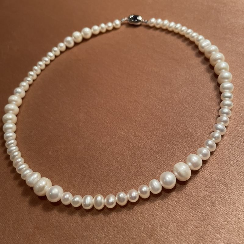 Ferskvandsperler er et naturprodukt og er derfor ikke ens i udseende og farve. Derfor har hver enkelt kæde deres egen unikke look.